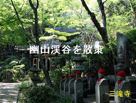 | 【三瀧寺】 山の懐に閉じ込められたような静けさの中を歩くと、水音がいたるところに置かれた石仏の囁きのように思われます。市内とは思えない静寂と穏やかな祈りの寺。何度でも訪れたくなる不思議な安らぎがあり、幽山渓谷を散策です。 |