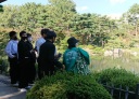 今日のガイドから、| 2023年4月12日(水) 今日の縮景園は朝から薄曇り。東京からの中学生の修学旅行生をご案内しました。中国の「西湖」を参考にしたこと、一個所に凝縮した日本の大名庭園の様々な技法に関心の様子でした。 |
